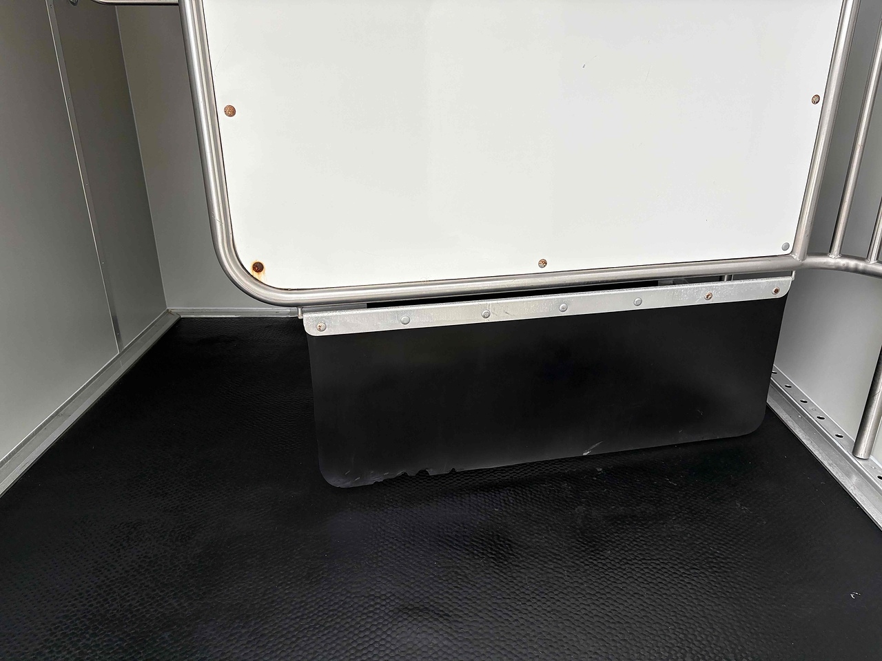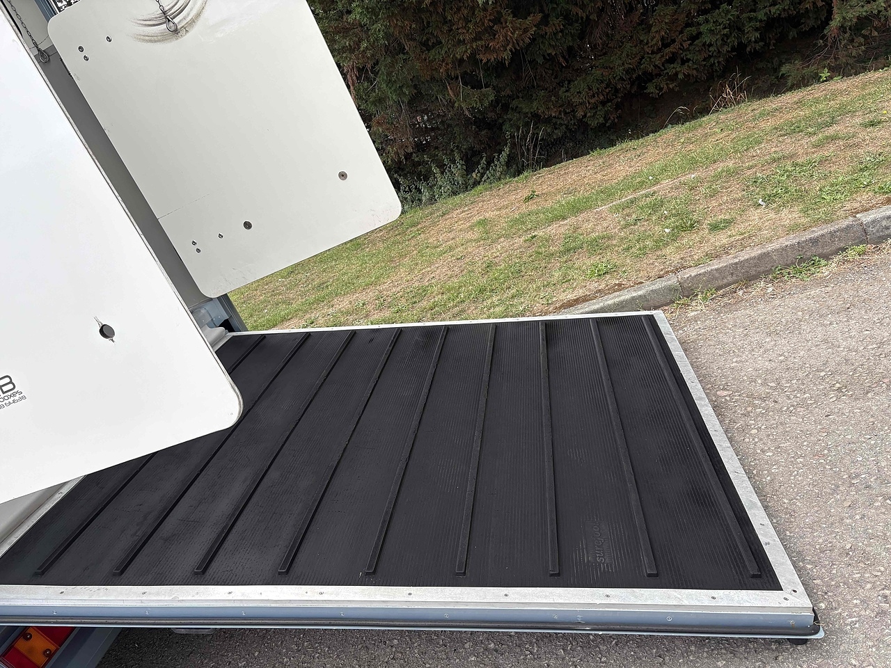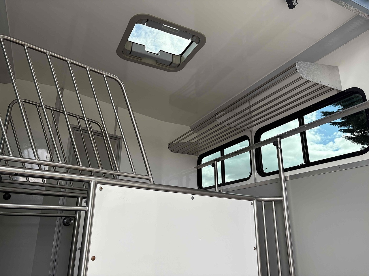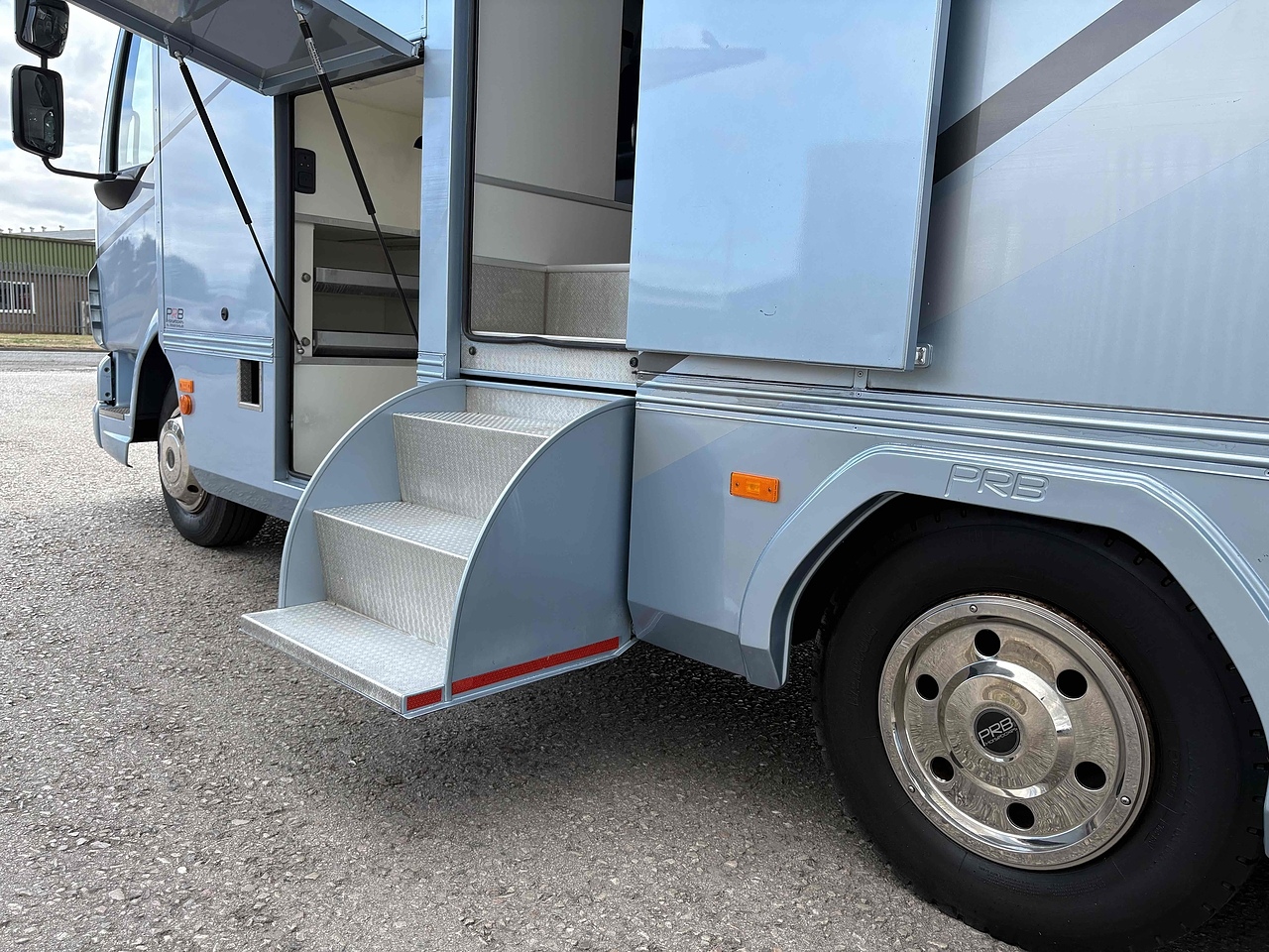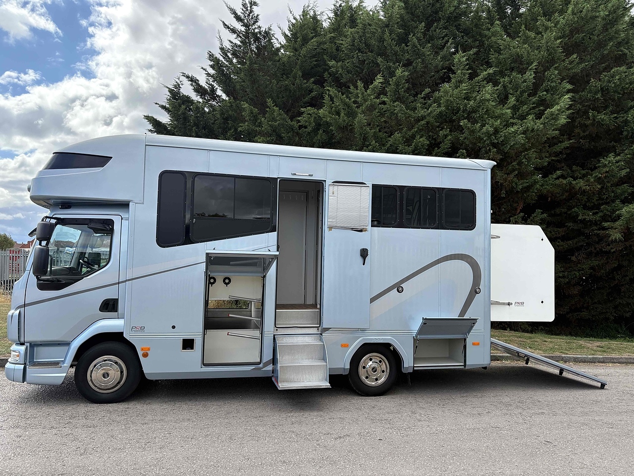 STALLED FOR 2 HORSES/ 3 PONIES, 10MM THICK ONE PIECE RUBBER MAT, ALUMINIUM INTERLOCKING FLOORING SYSTEM WITH ALL ALUMINIUM WASTE TROUGHS TO THE PERIMETER. 2 STAINLESS STEEL GAS SPRUNG PARTITIONS, STAINLESS STEEL HIGH LEVEL RUG RACK, HORSE AREA CAMERA, STAINLESS STEEL WINDOW GRILLS, SPRING BALANCED MANUALLY OPERATED RAMP, DAY AND NIGHT TIME TRAVELLING LIGHTS, REAR LOADING LIGHT, POP UP GLASS ROOF VENT. GRP WALK UP GATES.