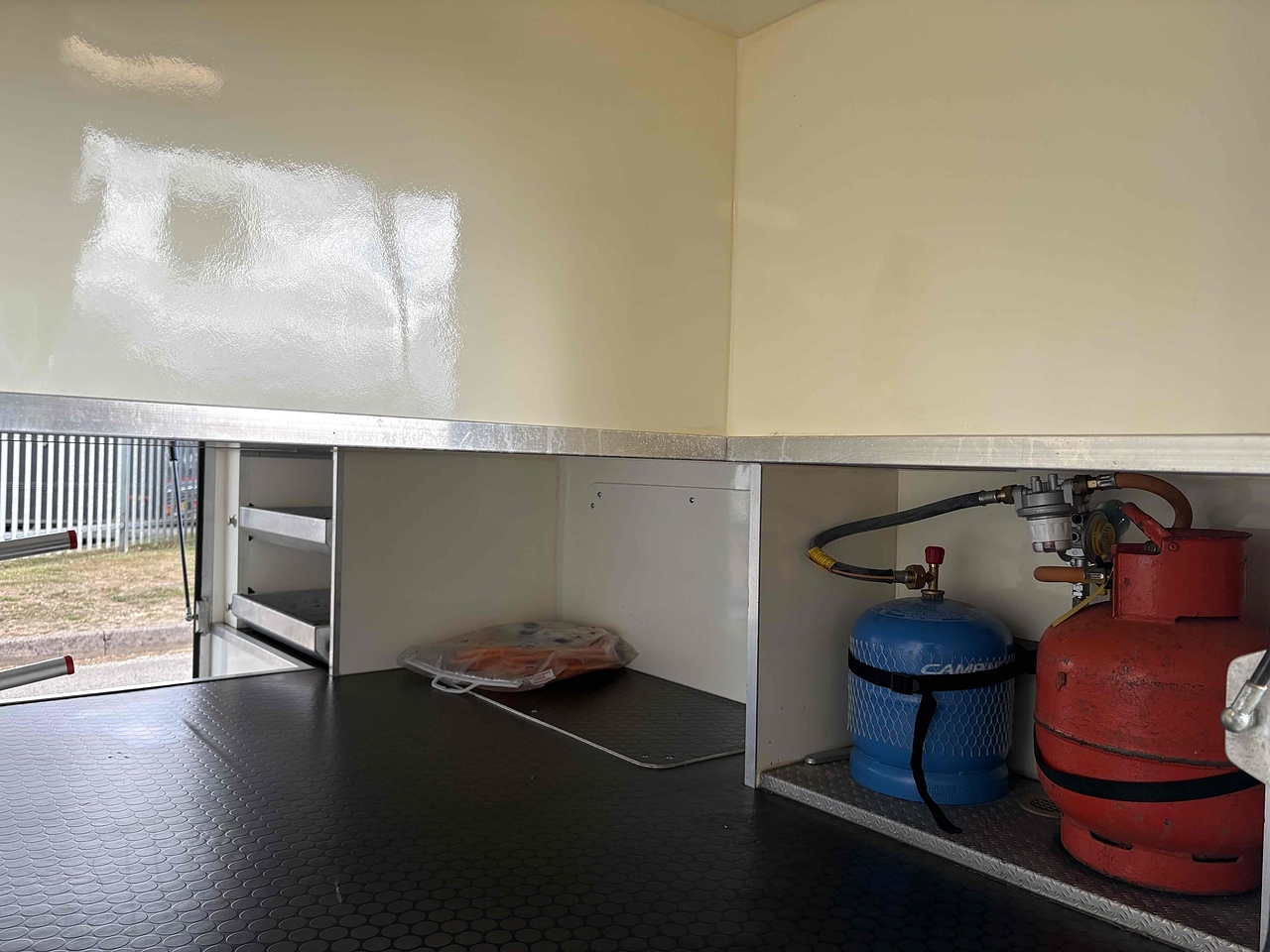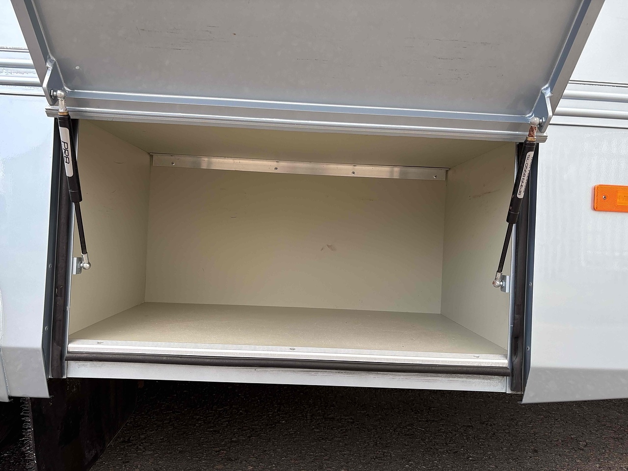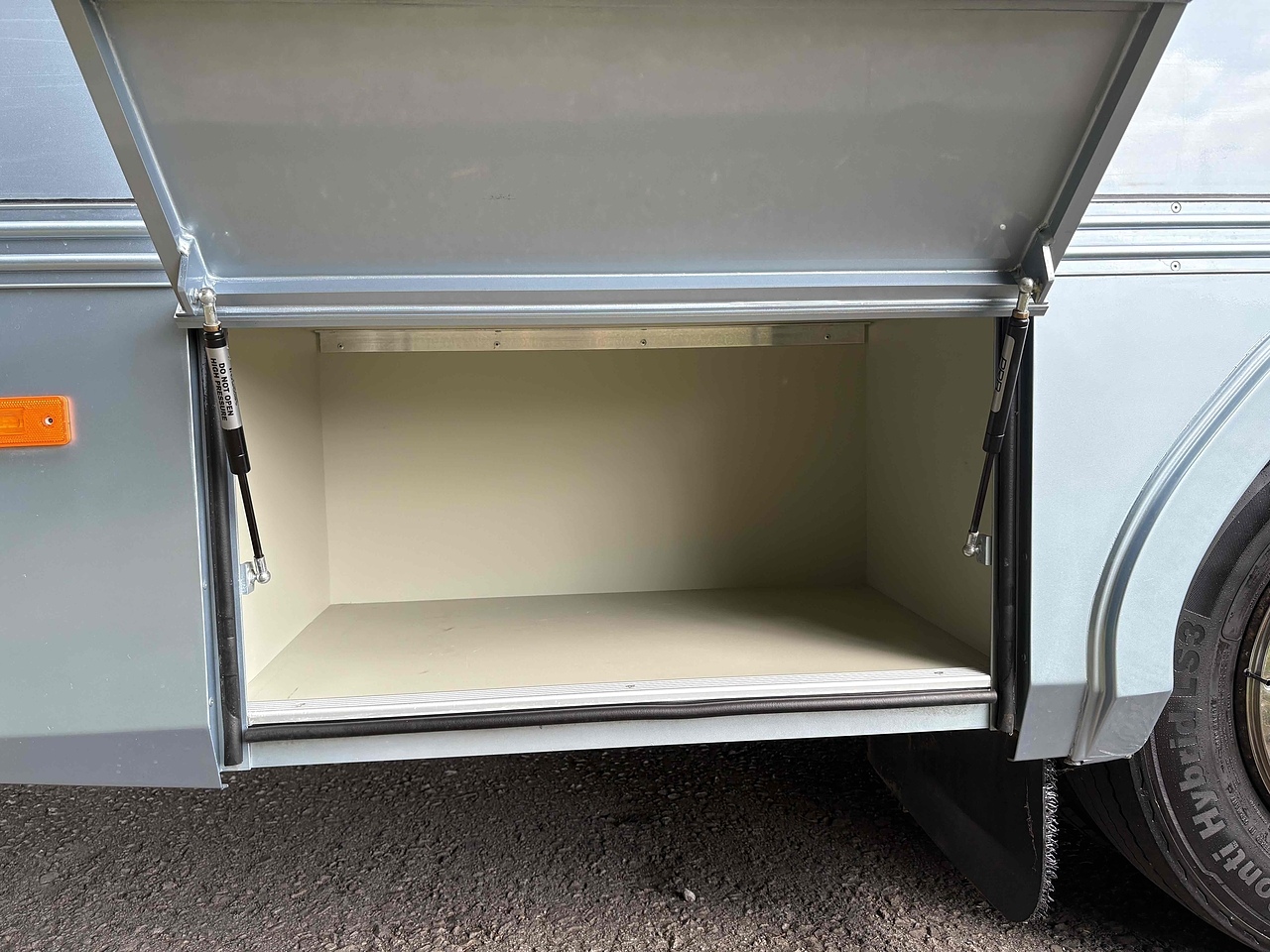 HUGE UNDERFLOOR STORAGE, SIDE TO SIDE ACCESS, TWO ALUMINIUM DRAWERS, COLD HORSE WASH PUMP OUT FACILITY. AUTOMATIC LED LIGHTING. HYDRAULIC PULL OUT TRIPLE SADDLE TREE.