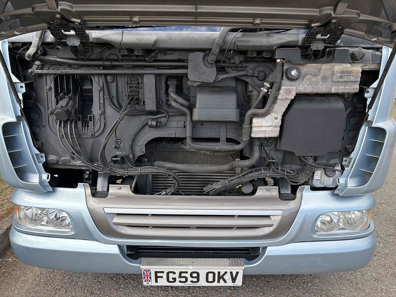 PRE LOVED AND IN OUTSTANGING CHERISHED CONDITION THROUGHOUT - FINISHED IN PALE BLUE METALLIC WITH OUR SIGNATURE STRIPES AND SWIRLS - ORIGINALLY BUILT ON A COMPLETELY REFURBISHED DAF LF AUTO CHASSIS.