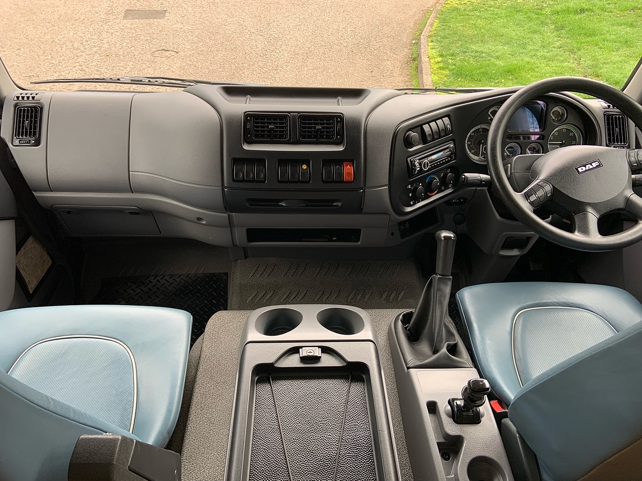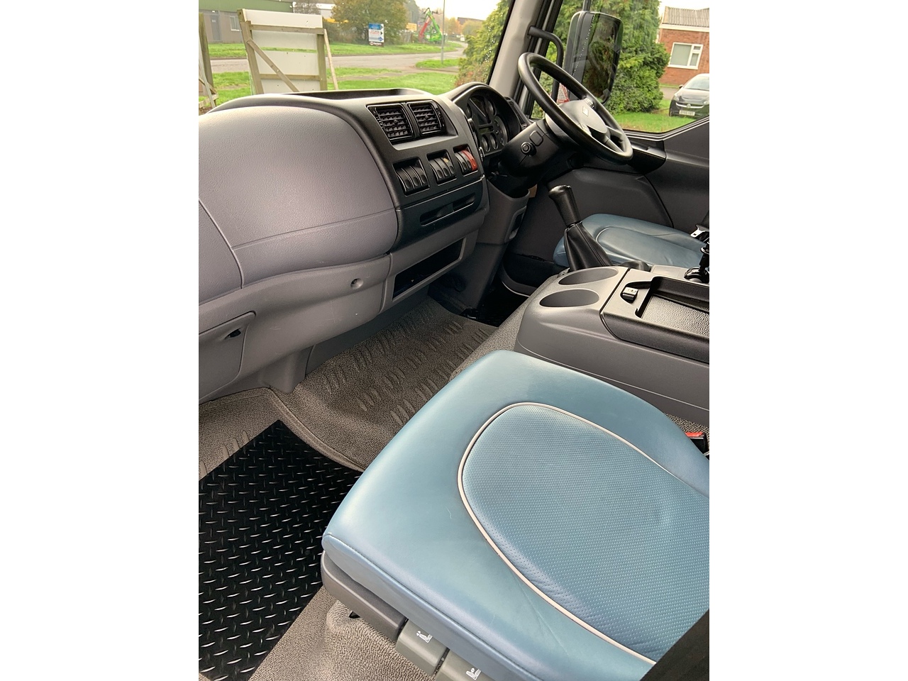 THREE SEAT CAB, RETRIMMED IN CHARCOAL GREY LEATHER TO MATCH THE LIVING AREA, ELECTRIC WINDOWS, CRUISE CONTROL, SPEED LIMITER, BLUETOOTH CD PLAYER, REVERSING AND HORSE AREA CAMERA MONITOR, HEIGHT ADJUSTABLE STEERING WHEEL.