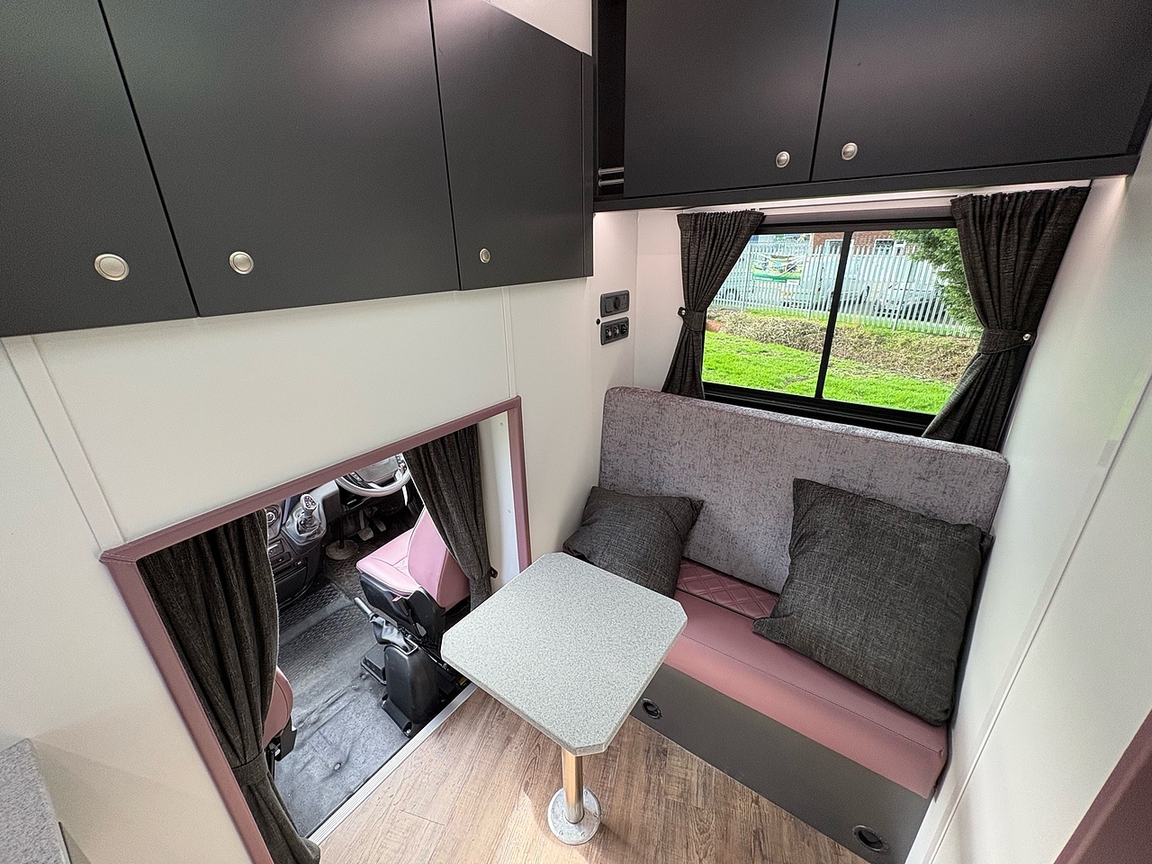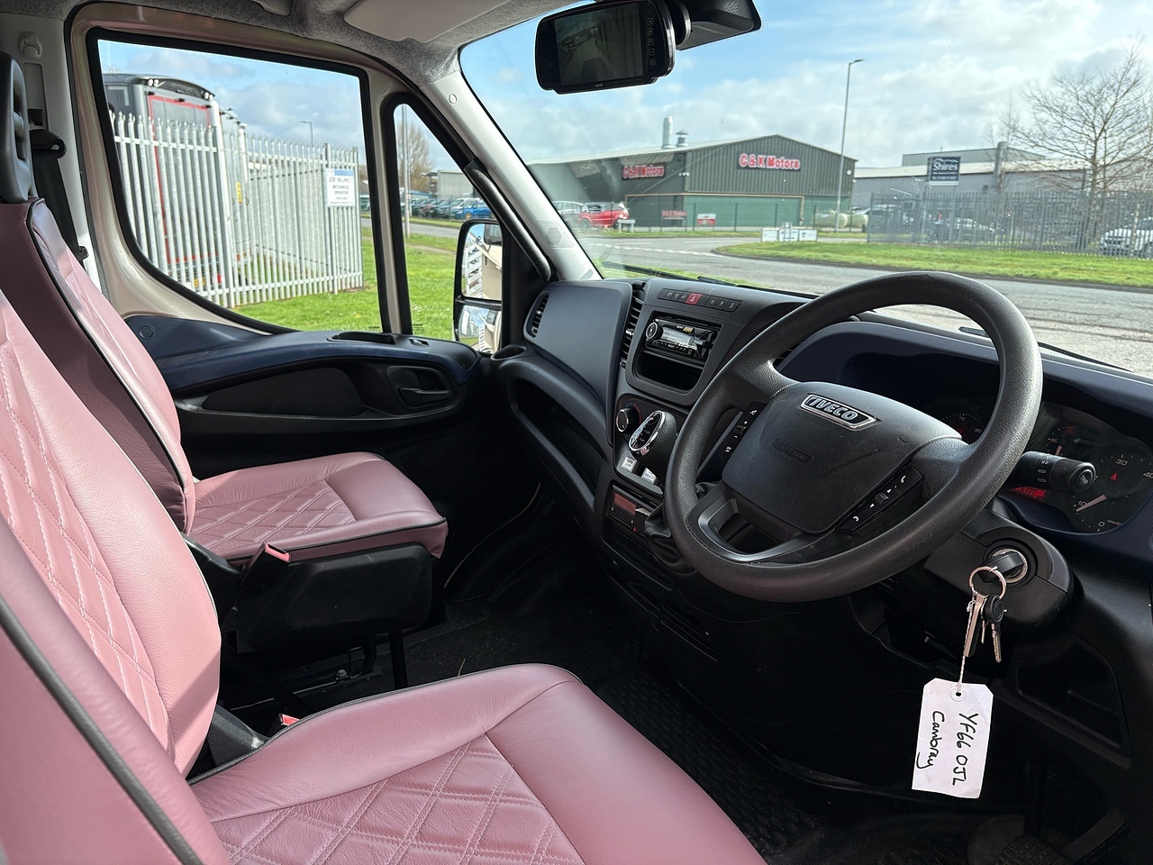 TWO SEAT CAB, RETRIMMED IN "VELE WATLING" LEATHER WITH BENTLEY STITCHING AND CHARCOAL GREY PIPING TO MATCH THE LIVING AREA, ELECTRIC WINDOWS, CRUISE CONTROL, SPEED LIMITER, BLUETOOTH CD PLAYER, REVERSING AND HORSE AREA CAMERA MONITOR, HEIGHT ADJUSTABLE STEERING WHEEL.