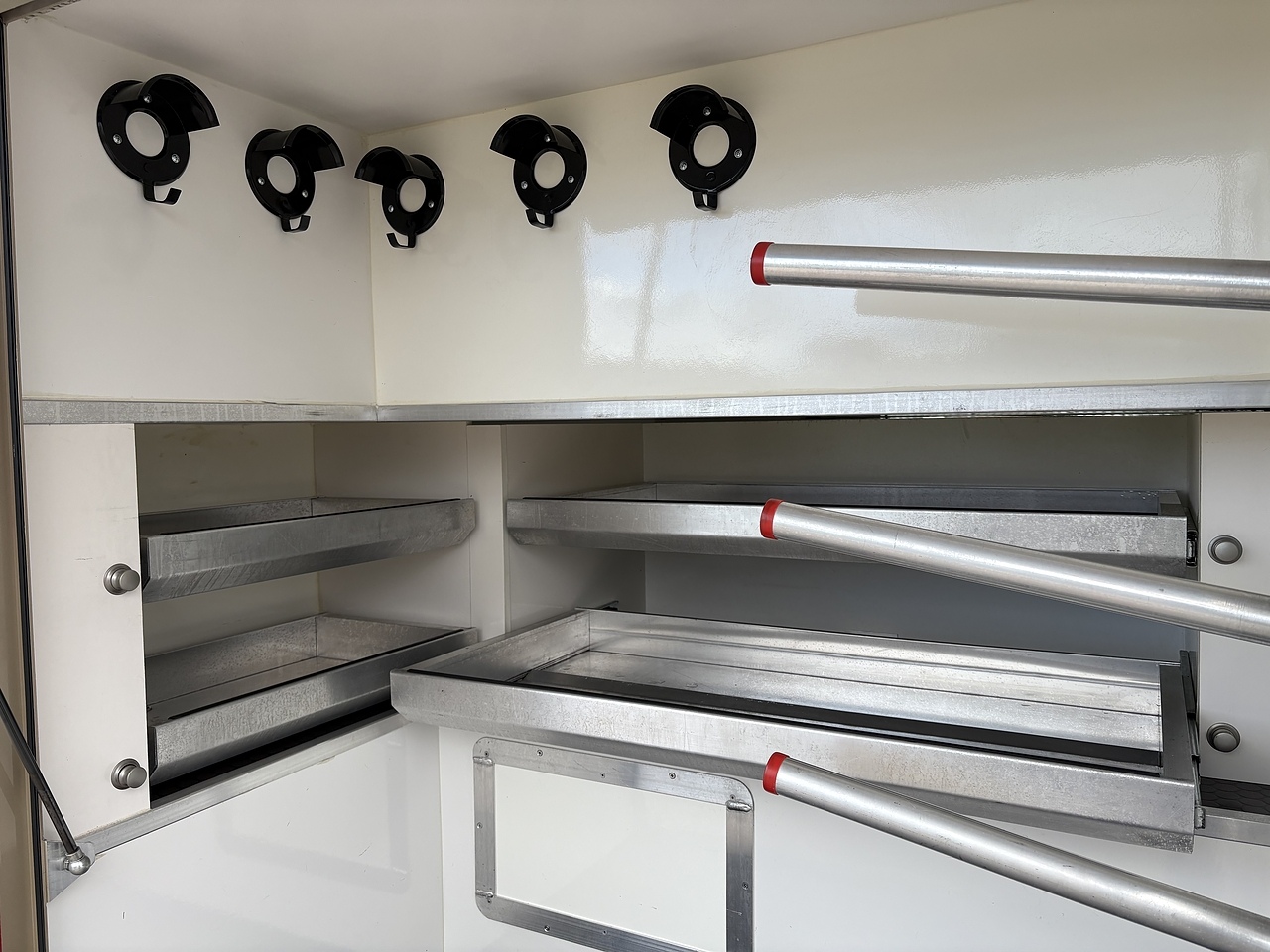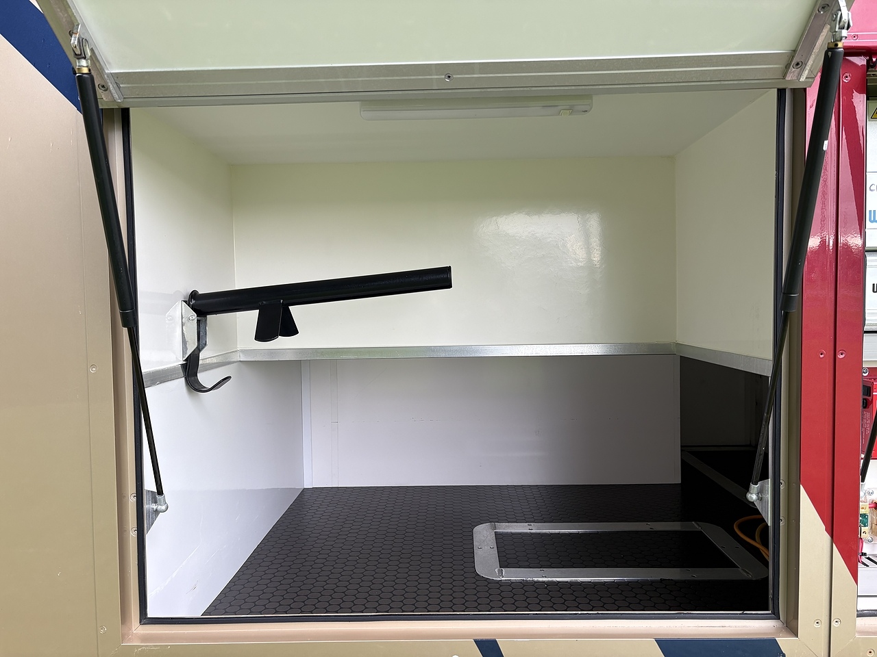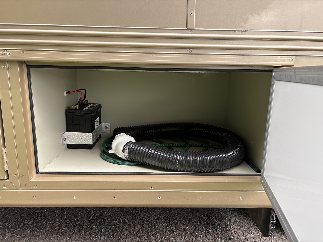 HUGE UNDERFLOOR STORAGE, SIDE TO SIDE ACCESS, TWO ALUMINIUM DRAWERS, COLD HORSE WASH PUMP OUT FACILITY. AUTOMATIC LED LIGHTING. HYDRAULIC PULL OUT TRIPLE SADDLE TREE.