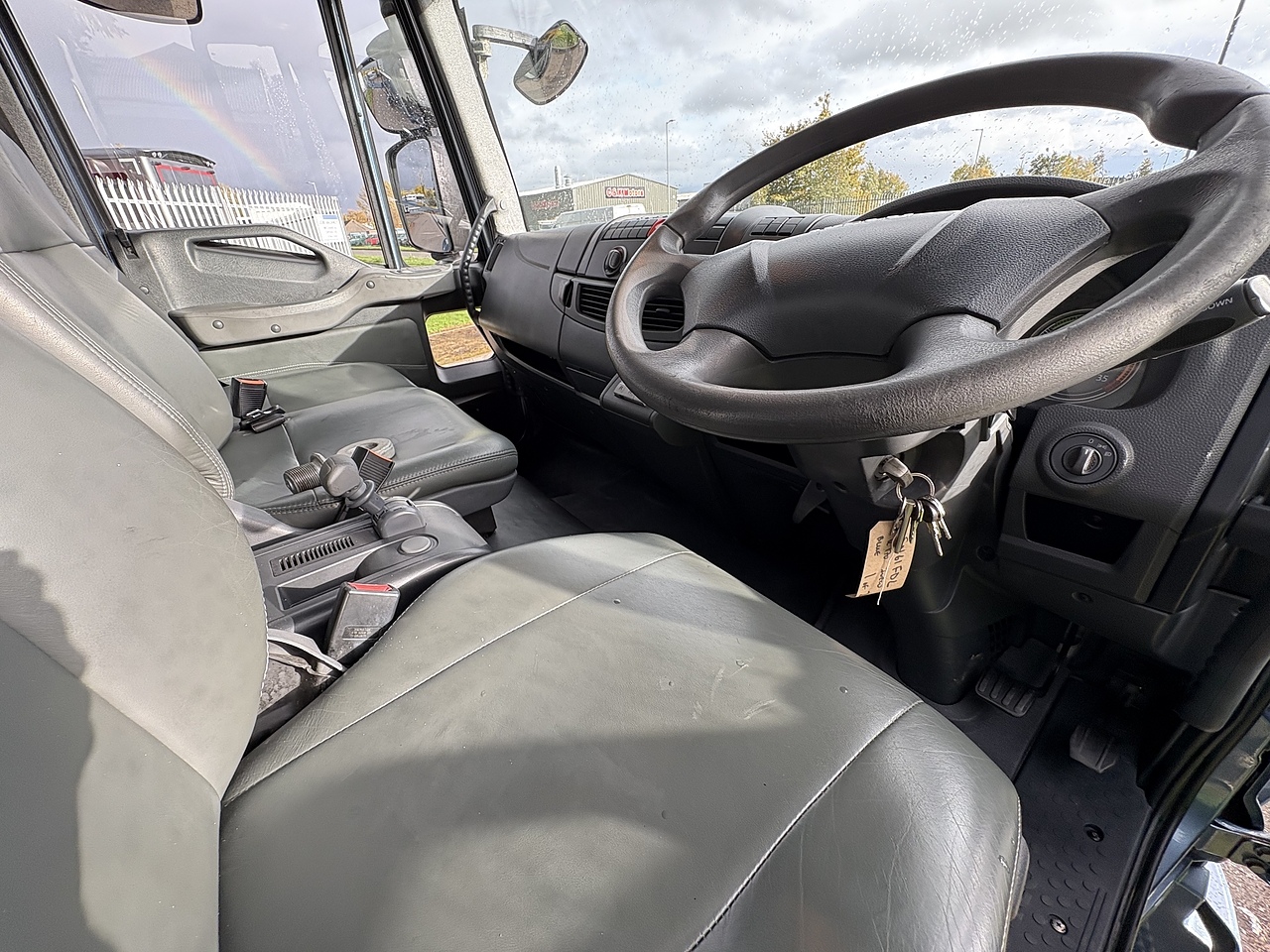 THREE SEAT CAB, RETRIMMED IN CHARCOAL GREY LEATHER TO MATCH THE LIVING AREA, ELECTRIC WINDOWS, CRUISE CONTROL, SPEED LIMITER, BLUETOOTH CD PLAYER, REVERSING AND HORSE AREA CAMERA MONITOR, HEIGHT ADJUSTABLE STEERING WHEEL.